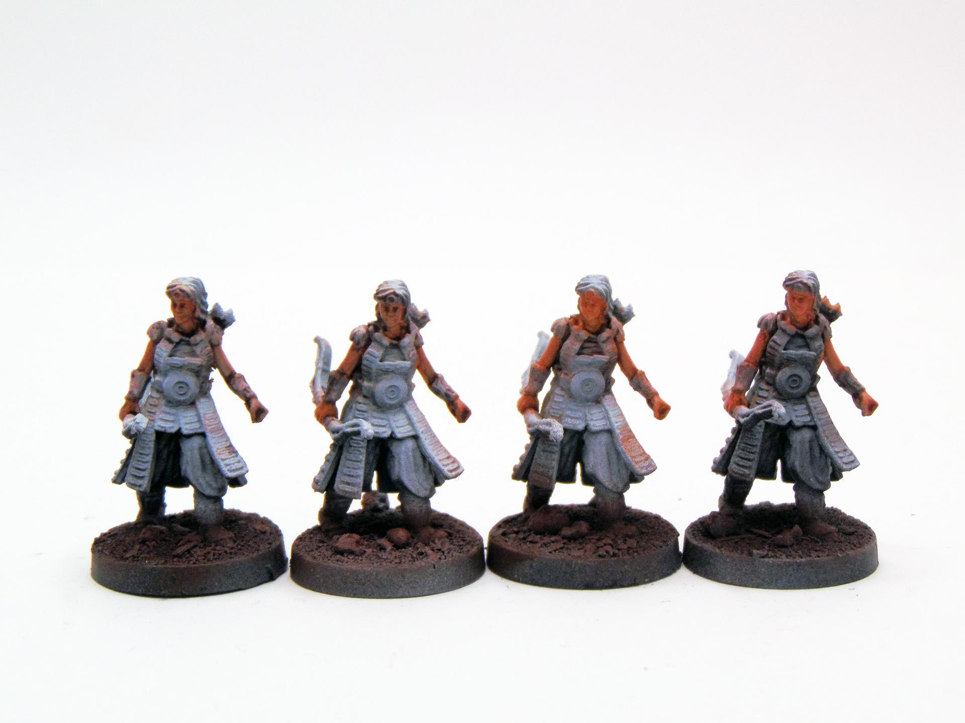 Und wir machen weiter. Ich bin am Wochenende leider nicht ganz so weit gekommen wie ich wollte, denn wie sich herausgestellt hat, sind die Hautpartien der Figuren doch deutlich hautlastiger als ich es in Erinnerung hatte - zumindest aber ist ein gutes Drittel nun mit Hautgrundfarben sowie den ersten Washes versehen. Mal gucken, wie weit ich bis zum Maltreffen komme ... Der derzeitige Stand: Dervahl und die männlichen Oseram: Die weiblichen Oseram: Die nächsten 6 Banditen: Und Banditen-Anführer: Da machen wir beim nächsten Mal weiter! Soweit von mir für jetzt! Möge das blaue Licht euch bis dahin gewogen bleiben! -