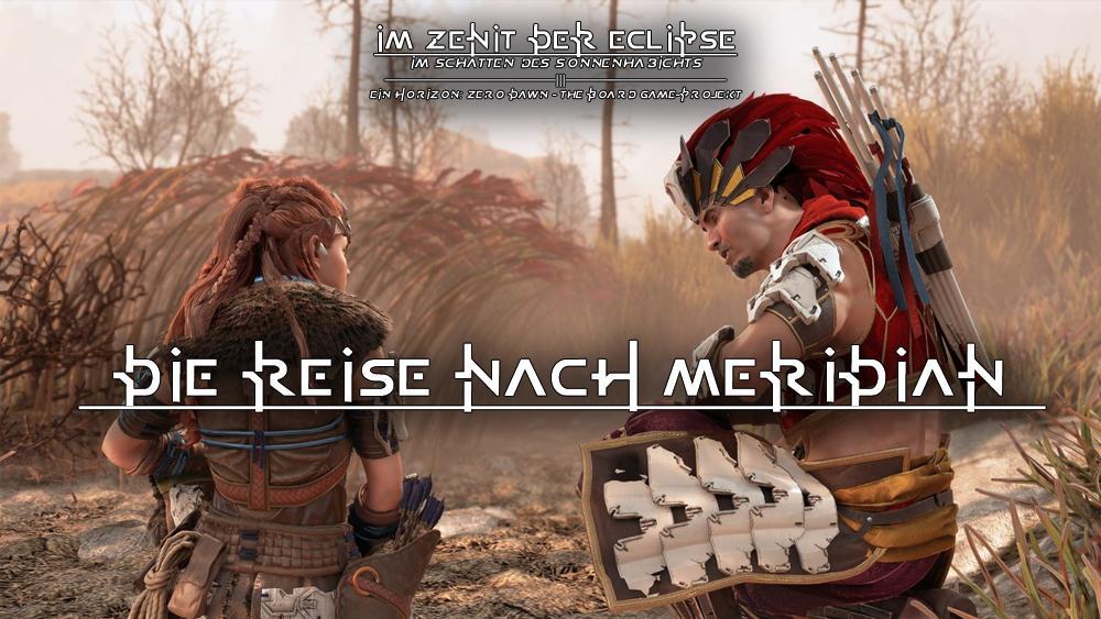 Der Tag hatte noch nicht zu dämmern begonnen, als Aloy aus ihrem Schlaf erwachte. Das blaue Licht einer nicht weit entfernt befindlichen Maschine deutete darauf hin, dass der von ihr überbrückte Läufer noch immer auf sie wartete. Sie erhob sich, packte ihr Nachtlager zusammen und bestieg ihr quadrupedales Transportmittel. Der Läufer brachte sie in Windeseile sicher an das schwere, hölzerne Tor, das den Hauptzugang zu Urmutters Becken sperrte. Große, ebenso hölzerne Wachtürme flankierten die meterhohe Konstruktion, doch erstaunlicherweise waren nur wenige Wachen zu sehen. Das Haupttor schien einen Spalt weit geöffnet zu sein, nein, eher eingedrückt, wie Aloy beim Näherkommen feststellte - fast so, als habe etwas schweres die Wehr immer wieder gerammt, bis sie schließlich nachgegeben hatte. Weiter vorne, jenseits der Barriere, erklangen Kampfgeräusche, doch als Aloy den Läufer antrieb und kampfbereit durch das Tor stürmte, sah sie nur noch, wie ein Krieger seinen Speer aus einem gefällten Sägezahn zog. Seine Kameraden schwärmten bereits aus, um den Verwundeten zu helfen oder bereits gefallene Maschinen zu untersuchen. Das musste Varl sein. Der junge Mann drehte sich um und blickte sie überrascht an. Hatte er es sich eingebildet, oder war sie tatsächlich auf dem Läufer durch das Tor gekommen? Aloy überlegte kurz, ihm die Angelegenheit zu erklären, entschied sich jedoch anders und ließ es dabei bewenden. Dann berichtete sie ihm von den Geschehnissen und dass sie als Sucherin beauftragt war, nach Meridian zu gehen und den Verräter Olin zu suchen. Varl kannte den Weg nicht genau, doch er riet ihr, in die Siedlung Mutterkrone zu gehen und die Kriegerin Marea zu suchen, die sich bestens mit dem Areal und den Carja auskannte. Doch er riet auch zur Vorsicht: Seit dem Massaker am Kriegstrupp waren die Lande verwaist, und verdorbene Maschinen streift durch das Gebiet, jeden angreifend, der dumm genug war, sich aus dem Schutz der Nora-Siedlungen zu wagen. Und ohne einen Kriegsherrn würden sich die Nora auch nicht wirklich organisieren können. Resh sei beileibe kein Ersatz für Sona - und solange sie nicht zurückkehrte, würden auch die Lande ungeschützt sein. Aloy erfuhr nicht nur, dass Sona Varls Mutter war, sondern auch, dass Vala seine Schwester gewesen war. Wieder wurde ihr Herz schwer, als sie an die lebenslustige Jugendliche zurückdachte, die in den eisigen Höhen von Urmutters bergiger Flanke den Tod gefunden hatte. Varl berichtete ihr weiterhin von den Gefahren, die nun außerhalb des Beckens lauerten: verdorbene Maschinen, Banditen, die sich im Schutze des Chaos in die Heiligen Lande geschlichen hatten und nun auf unvorsichtige Reisende und versprengte Krieger lauerten und natürlich die Mörder, die nach dem Massaker während der Erprobung nun in Richtung Carja-Lande unterwegs waren. Aloy würde äußerst vorsichtig vorgehen müssen, wollte sie den Weg nach Meridian überleben. Doch zuvor, so bat er sie, solle sie nach Sona suchen. Die Nora benötigten ihre Führung und ihre Kraft, sofern sie die kommenden Wochen überleben wollten. „Ich würde sie selbst suchen“, erklärte er, „aber sie befahl mir, dieses Tor um jeden Preis zu schützen.“ Zuletzt war die Kriegsherrin am Ort des Kriegstruppmassakers gesehen worden, einer bewaldeten Niederung in der Nähe jener Alten-Stätte, die man Teufelsdurst nannte, doch danach verlor sich ihre Spur. Aloy versprach, sich auf dem Weg nach der Kriegsherrin umzusehen, bevor sie den Läufer erneut bestieg und sich aufmachte. Sie hatte ihr ganzes Leben im Becken verbracht, nun öffnete sich eine neue Welt vor ihr. Sie erschien ungemein groß – und ungemein gefährlich. Bald schon traf sie den Ausgestoßenen Cren, der ihr von „Jagdgebieten“ erzählte, von Prüfungen, die es einem Maschinenjäger ermöglichten, seine Fähigkeiten zu testen. Da das Gebiet direkt auf ihrem Weg lag, machte Aloy auch dort Halt, um weitere Informationen über Maschinen und die Geschehnisse außerhalb der schützenden Nora-Lande einzuholen. Sie erfuhr, dass das Jagdgebiet und sein Hüter, ein Nora, zu einer Organisation namens „Jägerloge“ gehörte, einem stammesübergreifenden Verbund von Maschinenjägern, die sich der Jagd auf große und gefährliche Maschinen verschrieben hatten und die miteinander wetteiferten, wem es gelang, die größte und gefährlichste Maschine zu erlegen. Er selbst hatte das Heilige Land der Nora zu eben diesem Zweck verlassen – anders als sie ohne Erlaubnis – doch sich in der Carja-Heimat nie wirklich wohl gefühlt. So war er zurückgekehrt, doch lebte stetig in Angst, seine Reise könnte bemerkt und er in der Folge verstoßen werden. Der Hüter bot ihr an, ihr Können zu testen und Medaillen für den Zugang zur Jägerloge zu gewinnen. Aloy, die vermutete, dass dies ihr vielleicht sogar den Zugang nach Meridian erleichtern, wenn nicht gar ermöglichen würde, stimmte zu und stellte sich den ersten Prüfungen. Es gelang ihr, drei sogenannte Halbsonnen zu erlangen, der Mindestvoraussetzung, um überhaupt Zugang zum Logengebäude zu erhalten. Nachdem ihr der Hüter die Medaillen übergeben hatte, setzte sie die Reise fort. Am frühen Abend – es hatte wieder einmal zu regnen begonnen – traf sie auf ihre ersten verdorbenen Maschinen. Es handelte sich um eine Horde Plünderer, die den Weg gen Norden blockierten. Sie zu umgehen, hätte Aloy einige zusätzliche Stunden gekostet und sie hatte bereits zu viel Zeit verloren. Also näherte sie sich den Maschinen verdeckt an – zumindest glaubte sie das. Sie wurde sofort geortet. Ohne Umschweife stürzten sich alle vier Plünderer auf sie, beharkten sie mit Schneidlasern und attackierten sie im Nahkampf. Aloy lief, sprang, sprintete und schoss mit dem Bogen, was das Zeug hielt. Sie erledigte eine Maschine, indem sie mit einem Schockpfeil ihr Nervenzentrum traf. Doch da waren die anderen drei Plünderer bereits heran. Eine klauenbewerte Metallpfote streifte ihr 